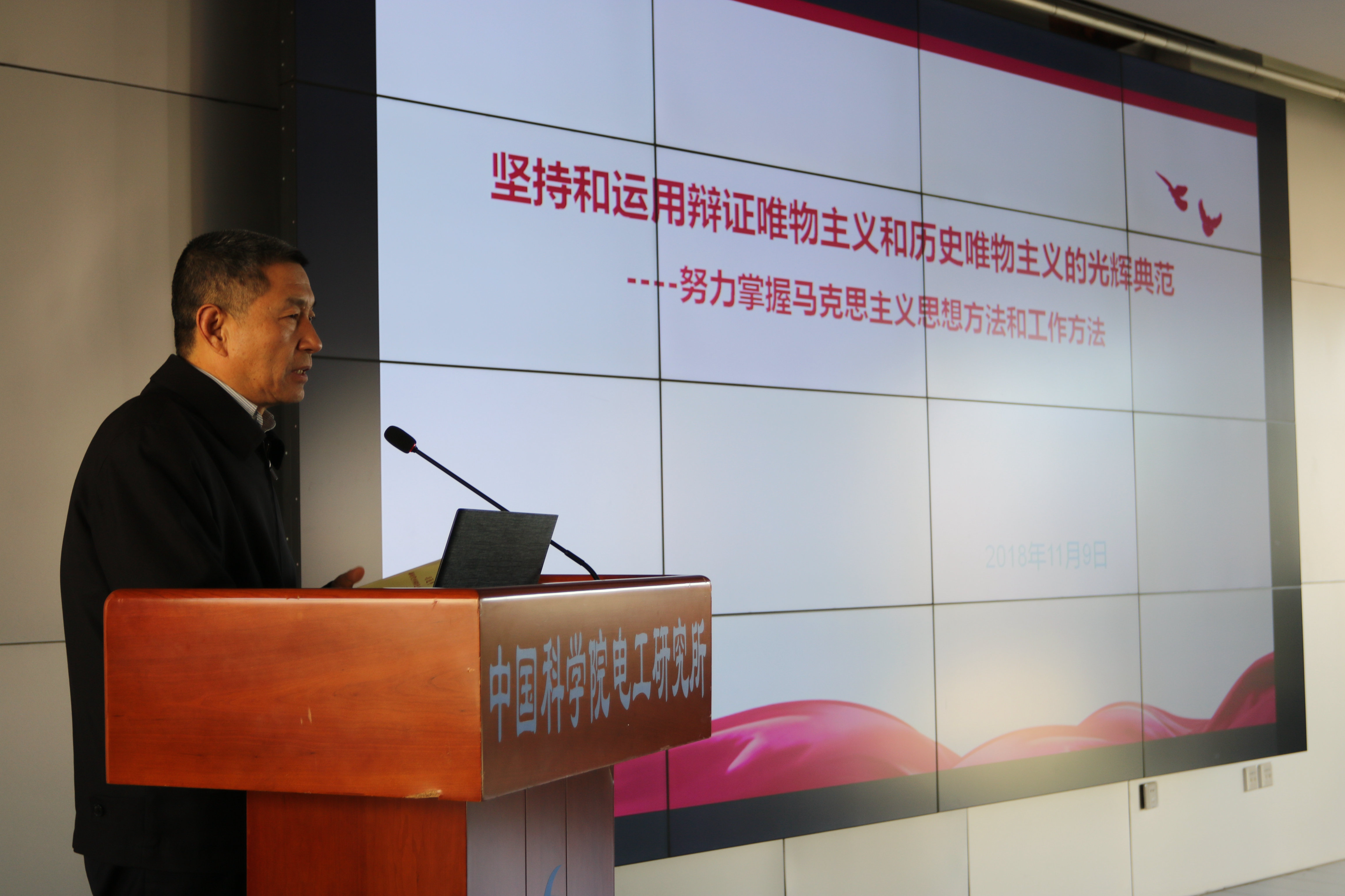 党委书记张福宽结合《习近平新时代中国特色社会主义思想三十讲》中第二十九讲,作题为《坚持和运用辩证唯物主义和历史唯物主义的光辉典范》辅导报告。他结合自身学习感悟和体会,对习近平新时代中国特色社会主义思想中蕴含的实事求是、战略定力、问题导向等8个马克思主义思想方法和工作方法进行了详细解读,他要求广大党员增强责任意识、使命意识和进取意识,更好地服务研究所的科研工作。