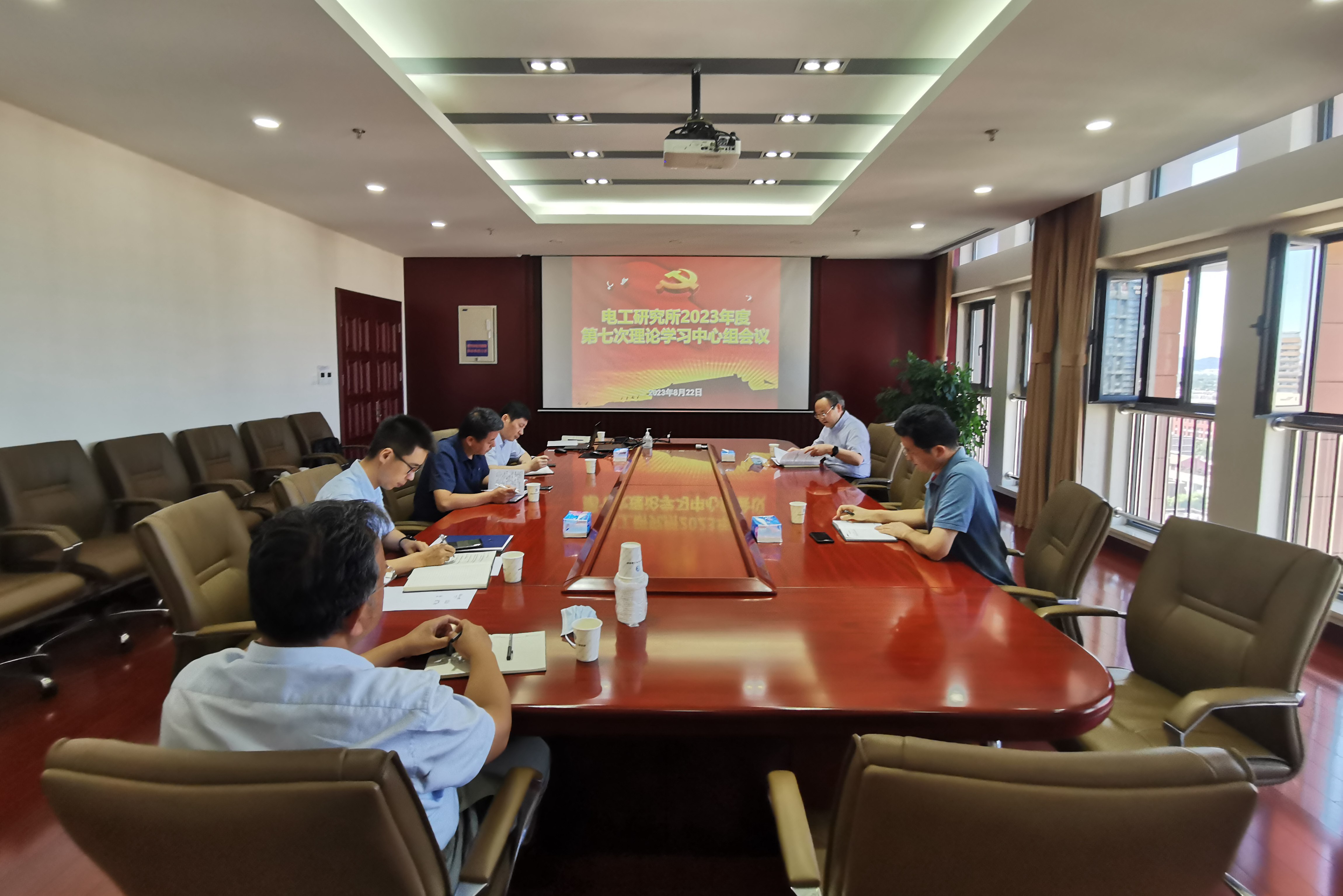 8月22日,电工所召开2023年第七次理论学习中心组学习会,传达学习习近平总书记关于党的建设的重要思想、2023年中国科学院夏季党组扩大会议精神。会议由所长、党委书记李耀华主持。
